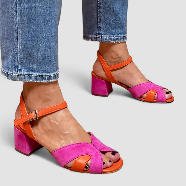 Lorette | spalvų derinimo sandalai su patogiu kulnu
