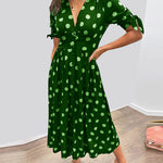 Monica™ | Elegantiška Taškinė Suknelė yra drabužis, kuris niekada neišeina iš mados. Su V formos iškirpte, kuri puošia siluetą, subtiliais mygtukais ir klasikiniais taškeliais su moderniu akcentu, ši suknelė suteikia tobulą balansą tarp retro stiliaus ir šiuolaikinės rafinuotumo. Pagaminta iš lengvos ir kvėpuojančios medžiagos, ji užtikrina komfortą visą dieną, nesvarbu, ar tai būtų pasivaikščiojimas lauke, ypatingas brunch'as ar elegantiška vakarienė.