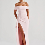 Jaustis pasitikinčiai ir neatsispiriamai su Alexandra suknele, sukurta pabrėžti jūsų unikalų grožį. Tiesus kirpimas ir peties be apykaklės išryškina jūsų figūrą, o strateginis raukinys ir šoninė plyšys sukuria tobulą pusiausvyrą tarp rafinuotumo ir drąsos. Neatskiriama dalis tiems, kurie nori išsiskirti stiliumi ir seksualumu.