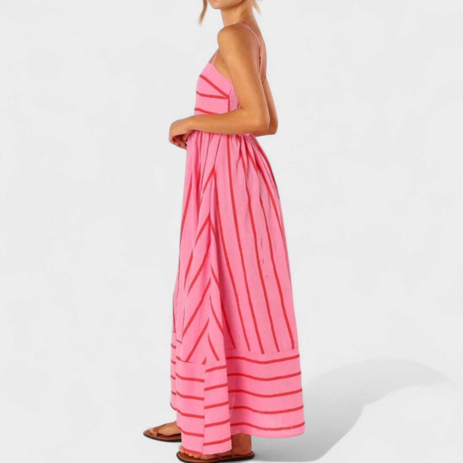 Tobulas Viduržemio jūros gaivumo ir atsipalaidavusios elegancijos derinys. Suknelė Isabel yra jūsų naujas būtinas drabužis saulėtoms dienoms, kurios turi būti nepamirštamos. Nuo pasivaikščiojimo saulėlydyje iki pietų prie jūros, ši suknelė lydi jus su stiliumi ir laisve.