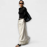 Atrask sijoną Emma, minimalistinį ir figūrą pabrėžiantį drabužį, kuris naujai apibrėžia paprastumą. Su savo H-formos kirpimu šis sijonas suteikia išbaigtą ir šiuolaikišką siluetą, idealiai tinka bet kokiai progai.