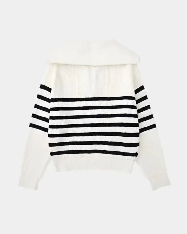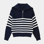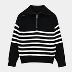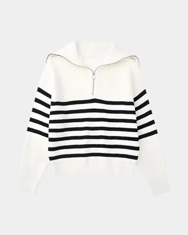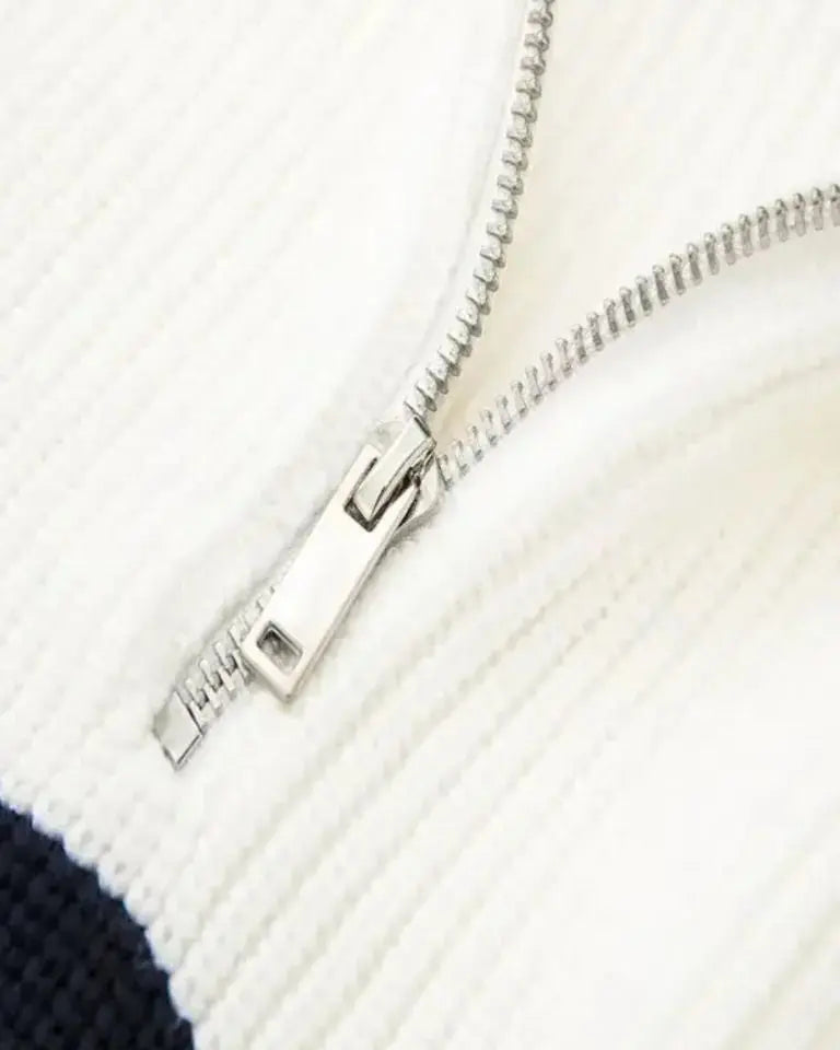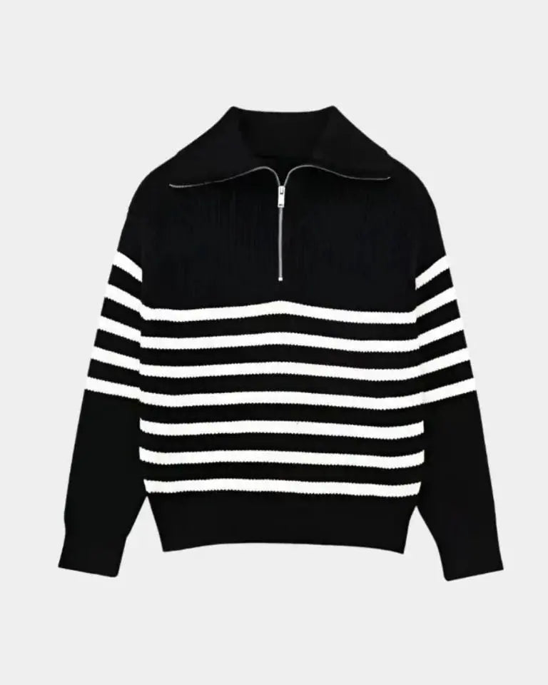 • Dizainas ir detalės: Nepriekaištingas dizainas su juostelėmis ir praktišku užtrauktuku sukuria universalią megztinį tiek dienai, tiek vakarui.