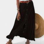 Lengvas ir elegantiškas, šis sijonas spinduliuoja diskretišką moteriškumą ir siūlo universalumą bet kokiai progai. Su šiek tiek pusiau skaidriu audiniu ir mygtukais priekyje, jį galima dėvėti nuo dienos iki nakties su tinkamu stiliumi.