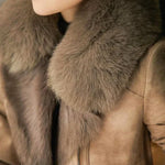 • Išskirtinis Dizainas: Modernus kirpimas ir prabangi avikailio apykaklė sukuria elegantišką ir rafinuotą įvaizdį.