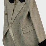 Įspūdingas paltas su dvigubu uždarymu, suteikiantis bet kokiam įvaizdžiui nepriklausomą eleganciją. Jame yra elegantiškas apykaklė su kontrastinga tekstūra ir priekyje esantys mygtukai, kurie užbaigia sofistikuotą išvaizdą. Puikiai tinka šiuolaikiškoms elegantiškoms derinys, taip pat ir profesinėms progoms.