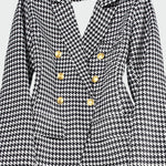 Įspūdingas švarkas su kirpimu, kuris apglėbia siluetą ir pabrėžia stilių. Jis turi elegantišką apykaklę su atlapais, dvigubą užsegimą priekyje su mygtukais ir du šoninius kišenes su atlapais. Jo laiko patikrintas dizainas daro jį idealiu tiek profesionalioms prezentacijoms, tiek vakarėliams, suteikdamas pasitikėjimo ir rafinuotumo bet kuriai progai.