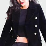 Elegantiškas švarkas su klasikinio kirpimo dvigubu užsegimu, kuris pabrėžia siluetą. Jo struktūra suteikia profesionalumo ir rafinuotumo, todėl jis puikiai tinka kasdienėms ar vakariniams renginiams. Minimalistinis dizainas daro jį būtinu bet kurioje garderobo dalyje.