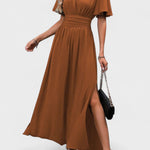Eterna | Elegantiška Juoda Maxi Suknelė su V Formos Iškirpte, Plačiomis Rankovėmis ir Šonine Iškirpte