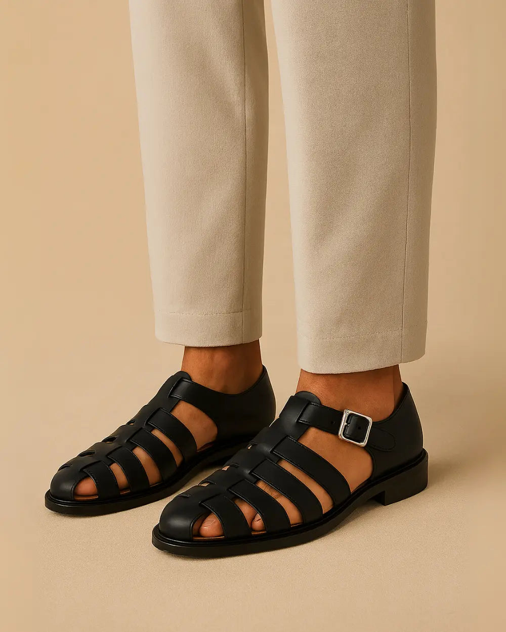 Grazio™ | Uždara sandalai su dirželiu atspindi laiką nepraeinančią eleganciją, sujungiančią klasikinę siluetą su struktūrizuota išmaniojo kasualo stiliumi. Amatų meistriškumas yra kiekvienos detalės centre, o sandalai džiaugiasi ribota gamyba, kuri suteikia jiems rafinuotą prestižą. Dizainas remiasi apgalvotos ir ilgaamžės tradicijos palikimu, todėl Grazio yra investicija į laikui nepraeinančią kokybės vertę ir patraukli kolekcinė vertė tiems, kurie vertina konservatyvią prabangą kasdieniame gyvenime ir laisvalaikio akimirkose.