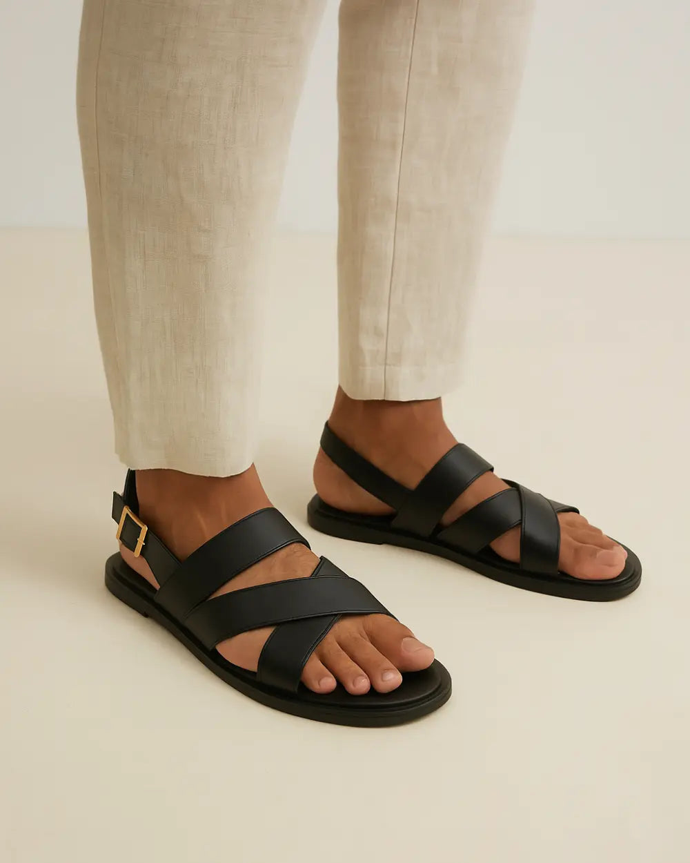 Lanaro™ | Elegantiški Kryžminiai Sandalai derina laiką nepaisančią eleganciją su atrinktais medžiagomis ir pasaulinės klasės amatininkyste. Išskirtinis kryžminis dizainas seka pėdą su lengvu, stabiliu pojūčiu, suteikiančiu saugumą ir komfortą visą dieną. Lanaro išskiria ramų pasitikėjimą ir estetinį paprastumą, kuris tinka tiek atsipalaidavusiems pasivaikščiojimams, tiek apgalvotiems poilsio momentams. Medžiagų apdorojimas ir kirpimas yra kruopščiai apgalvoti, siekiant užtikrinti ilgaamžiškumą ir bešuvę prigludimą, kuris seka pėdą kiekviename judesyje. Prieinama ribotu kiekiu, suteikiant ypatingą išskirtinumą, nesumažinant funkcionalumo.