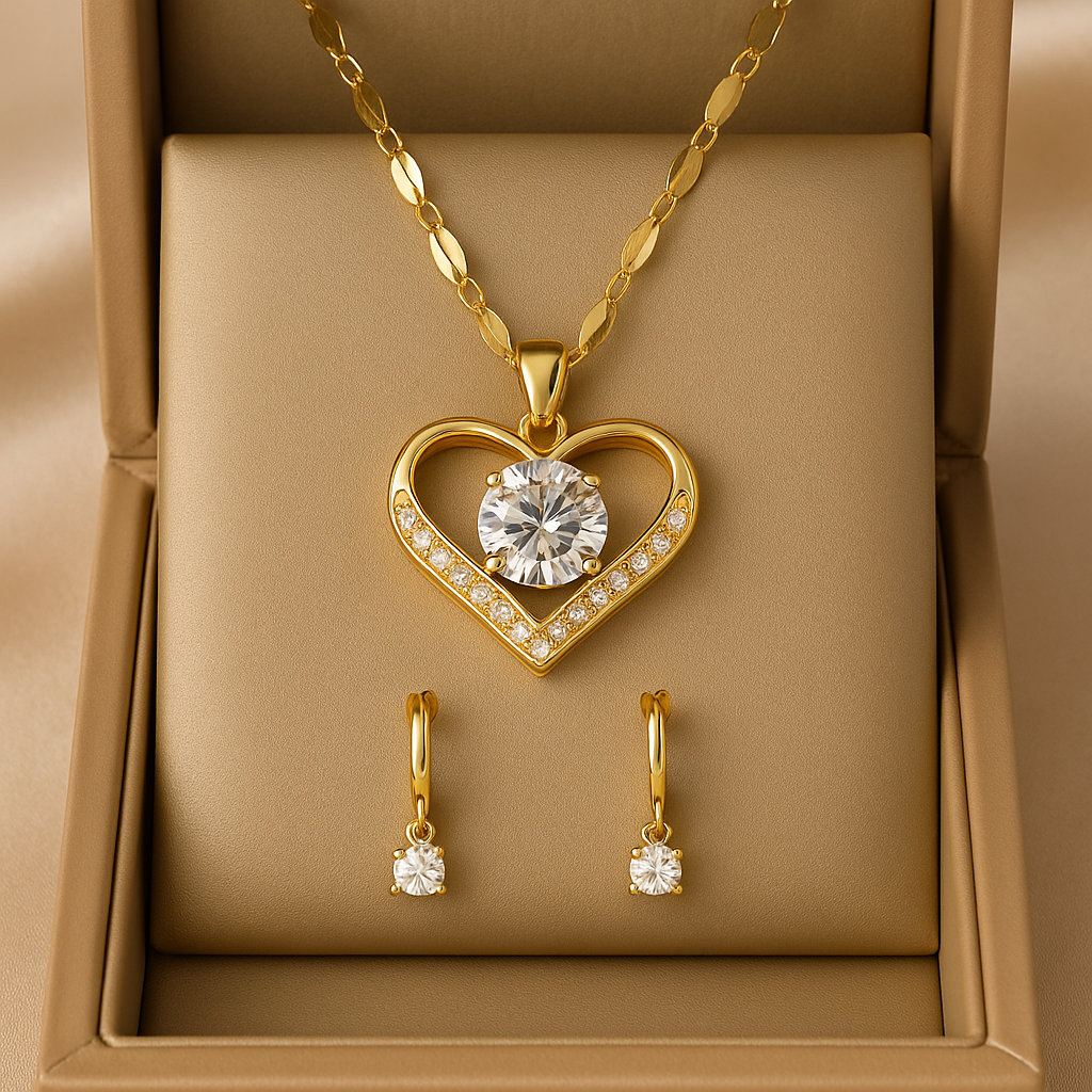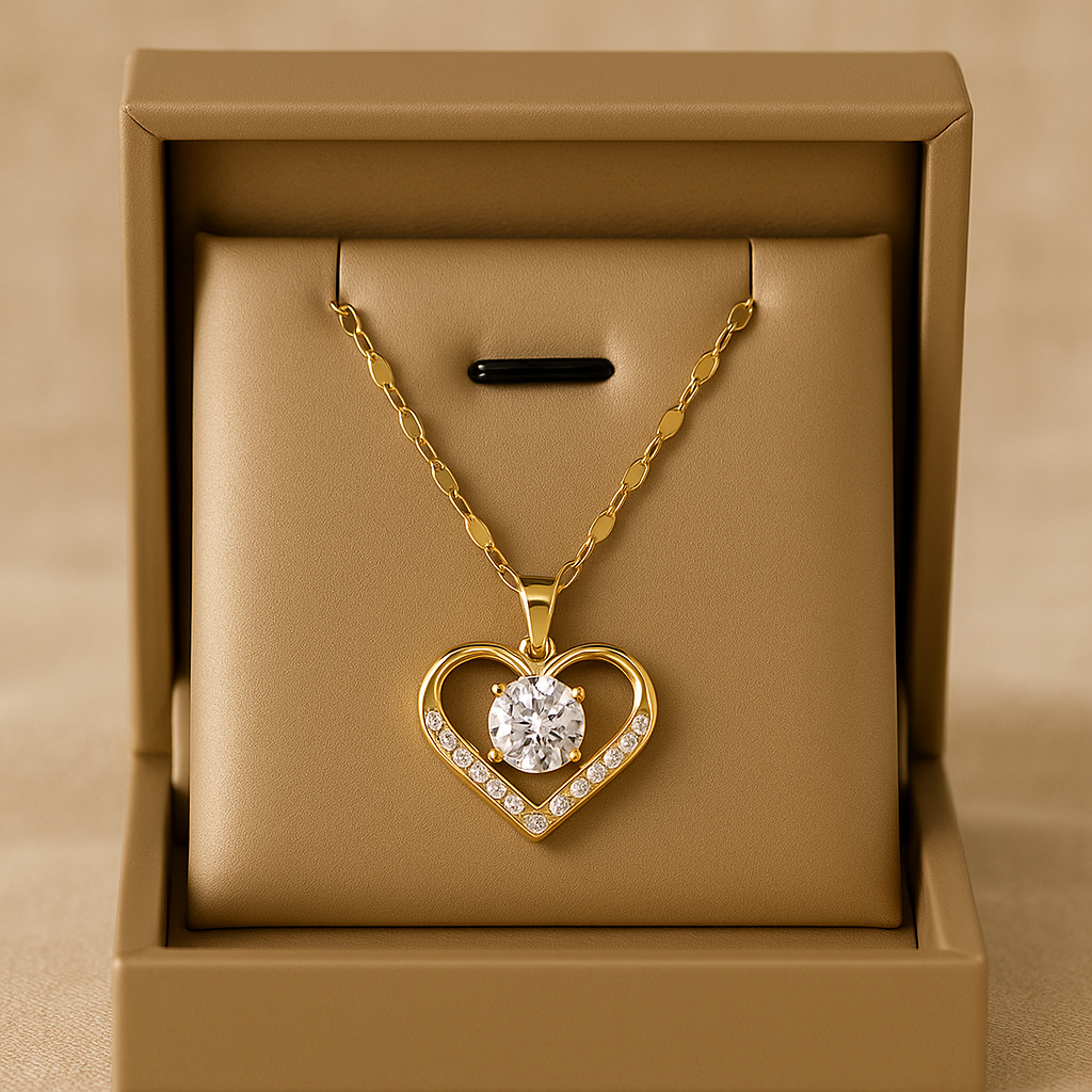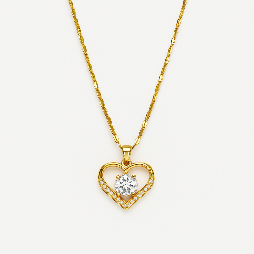 Delikatus papuošalas, sujungiantis aukso eleganciją su širdies simbolika. Išsiskiria subtiliais šoninėmis brangakmeniais ir didesne centrinėmis cirkonio akmenimis, kurie sugėrė šviesą ir simbolizuoja meilės grynumą.