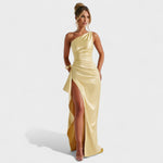 Suknelė Ariel yra saulės elegancijos įsikūnijimas. Jos asimetrinis dizainas subtiliai pabrėžia iškirptę ir pečius, tuo tarpu skaidrus satinas apkabina siluetą su prabangaus prisilietimo. Puikiai tinka spindėti ypatinguose renginiuose arba nepamirštamą vakarą.