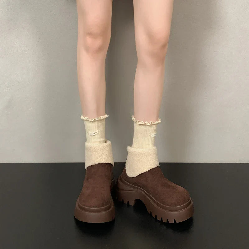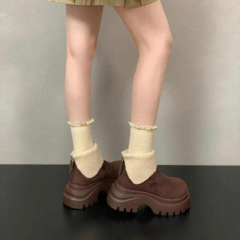 Stilingos Jazmin botai sujungia šilumą, komfortą ir modernumą viename modelyje. Su storu platformos padu, kuris suteikia papildomą aukštį ir stabilumą, šios botai išlaiko kojas šiltas dėka minkšto medvilninio pamušalo. Paprastas ir elegantiškas dizainas lengvai pritaikomas prie bet kokio įvaizdžio, todėl jie puikiai tinka kasdienai arba pasivaikščiojimams lauke žiemą.